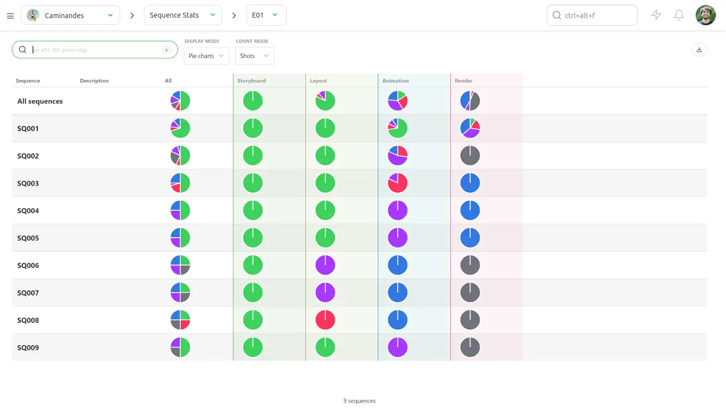 With Kitsu, you can view statistics on your projects progress. It provides high-level reports for a quick overview of what is happening. Exports are available for sending reports to third parties.